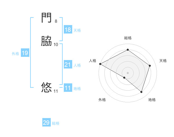 門脇 悠さんの名前の鑑定結果は 姓名判断ネット